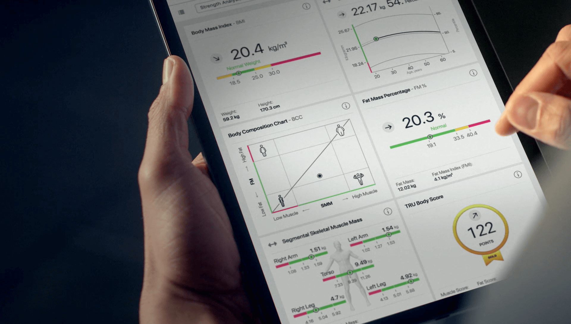 - Investiere nur wenige Sekunden und erhalte ein vollständiges Bild deiner Körperzusammensetzung.